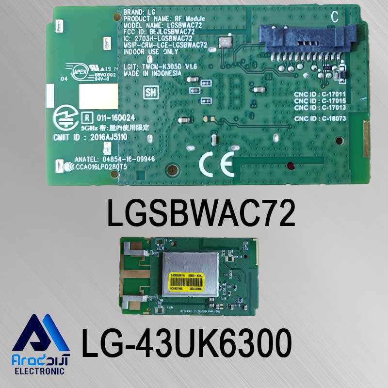 برچسب: 43UK6300, LGSBWAC72, برد وای فای تلویزیون ال جی